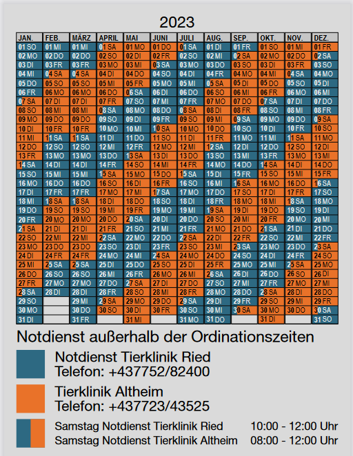 NEUE NOTDIENSTREGELUNG!Von admin / April 14, 2023 „Notdienstregelung mit der Tierklinik Ried“ FÜR WEITERE INFORMATIONEN, LESEN SIE BITTE UNSERE